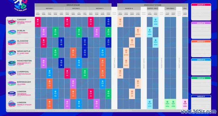 本届新增“人小组”法例:若径直晋级,五支人球队(含北爱尔兰)将按预设场馆进行小组赛: