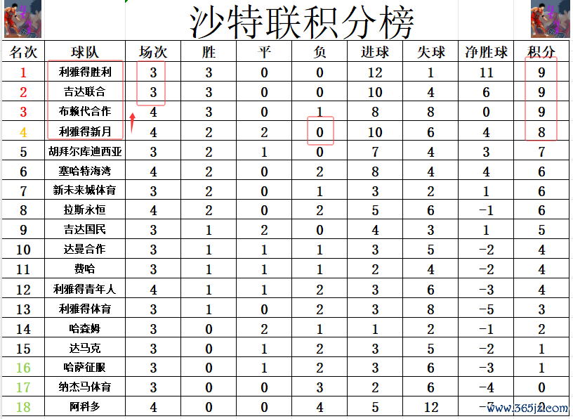 积分榜方面,布赖代配合今天赢球后,暂时追上利雅得顺利和吉达都集,净胜球间隙排在第3。利雅得眉月先赛赢球后,2胜2平4轮不败,差利雅得顺利1分,暂时升至第4,4连败的阿科多陆续垫底。