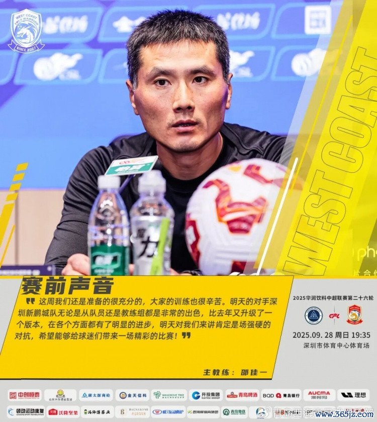 直播吧9月27日讯中超第26轮,青岛西海岸客场对阵深圳新鹏城。赛前,青岛西海岸主帅邵佳一和球员陈柏良出席了新闻发布会。