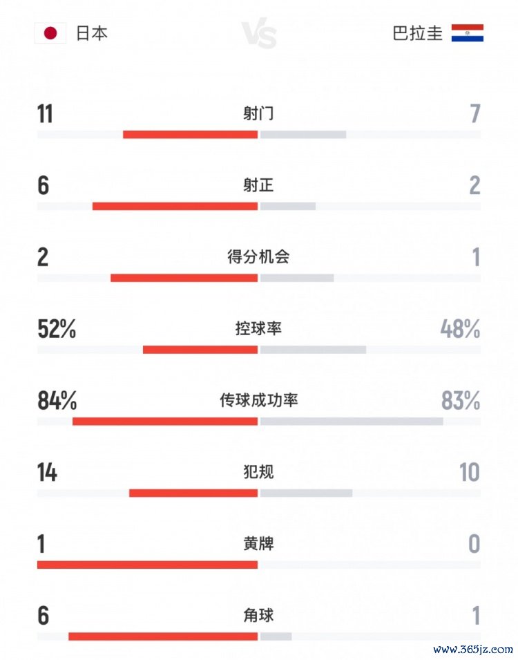 你的位置:J联赛直播 > 西甲赛事 > 补时绝平,日本2-2巴拉圭数据:射门11-7,射正6-2,控球率近55开