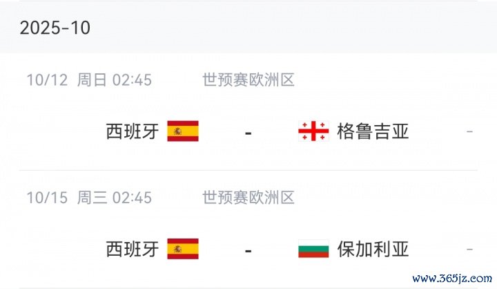 西班牙将在10月12日和15日永诀对阵格鲁吉亚和保加利亚。