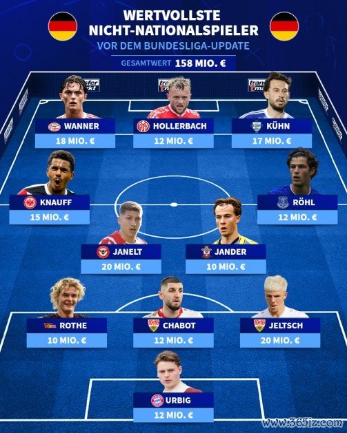 先锋:万纳尔(埃因霍温,1800万欧)、霍勒巴赫(好意思因茨,1200万欧)、尼古拉斯-库恩(科莫,1700万欧)