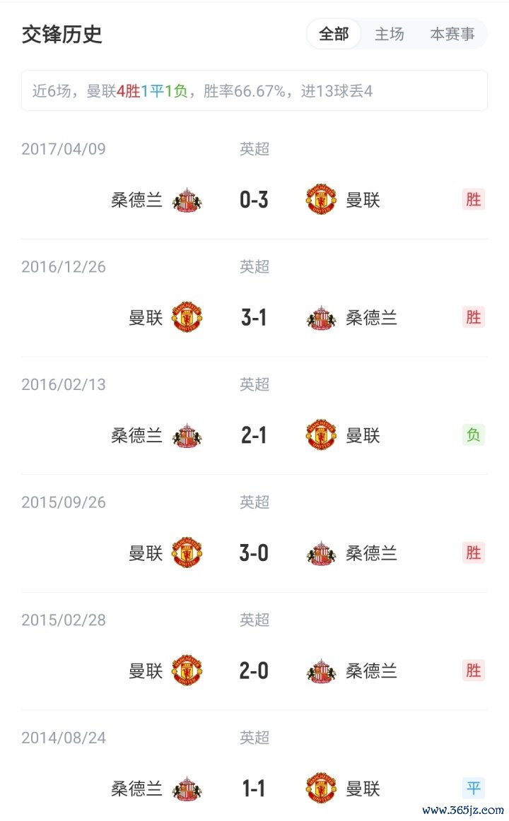 现在英超积分榜上,曼联2胜1平3负积7分,位列第14;升班马桑德兰3胜2平1负积11分,位列第6。