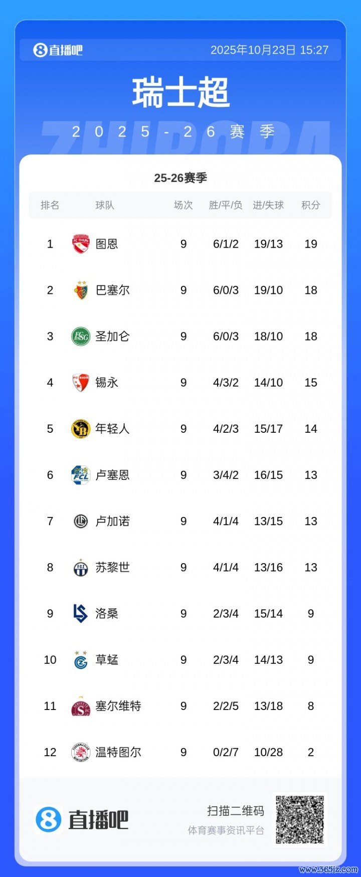 瑞士超积分榜↓