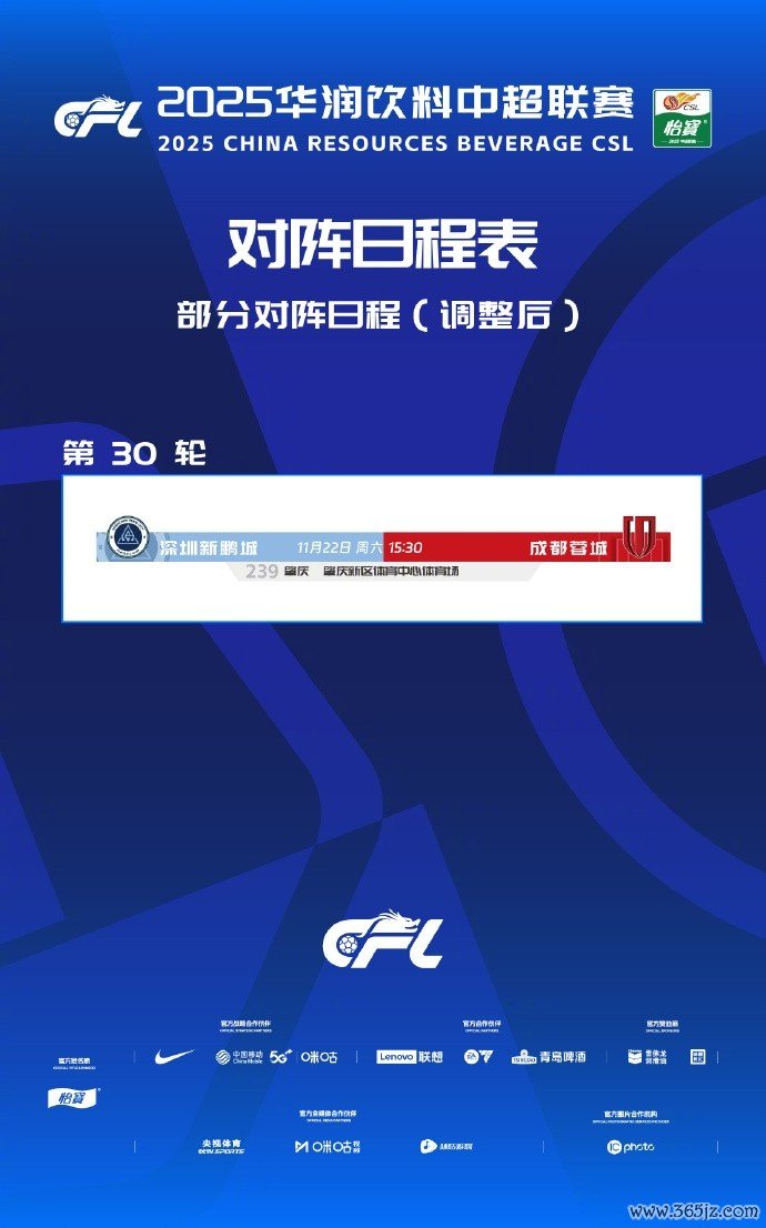 11月3日讯 官方音尘,中超第30轮深圳新鹏城vs成王人蓉城的比赛将改在肇庆新区体育中心率领场进行。