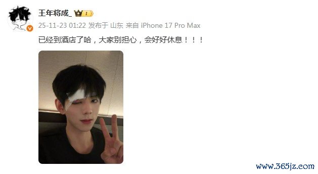 事情发生后,王年将成在今天凌晨更新微博,向外界报祥瑞,暗意“依然到酒店了哈,众人别缅念念,会好好休息”。像片中不错了了看到,王年将成的眼眶出现红肿,眉骨也已被包扎起来。