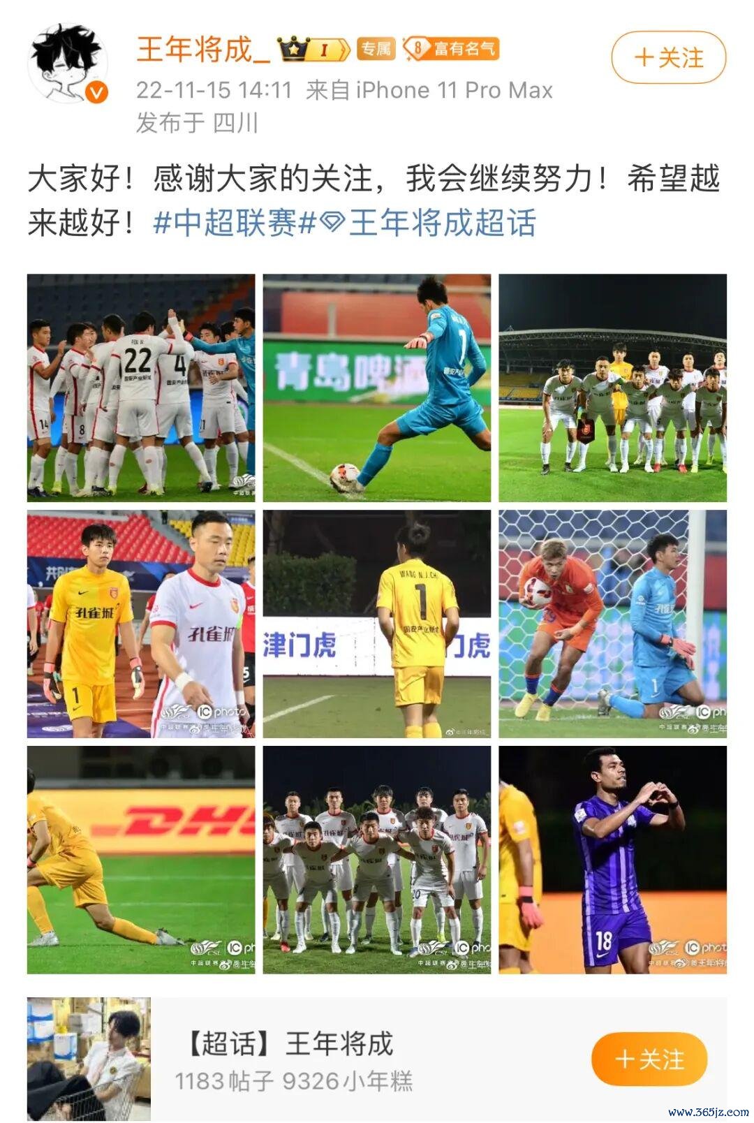 其果然担任门将工夫,王年将建树因为184cm的身高和颇具芳华感的神情成绩了一群粉丝,极目新闻记者眷注到,其微博现时能看到的最早音问发布于2022年11月15日他登陆中超赛场后不久,彼时他便有一些粉丝的眷注。